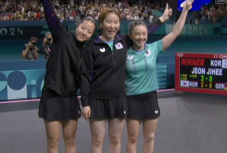 2024 파리 올림픽 탁구 여자 단체 동메달전에서 대한민국과 독일이 만났습니다. 대한민국은 3-0으로 이기며 동메달을 획득하였고 여자 단체 세계랭킹 3위임을 다시 한 번 입증시켜 줬습니다.