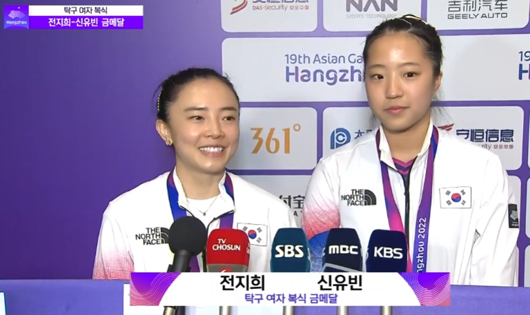 탁구 금메달 소식 모두 들으셨는지요? 탁구 여자 복식 전지희-신유빈 조가 항저우 아시안게임에서 큰일을 해냈습니다. 준결승에서도 높은 집중력과 순발력을 보이며 중계를 보는 저를 경기 내